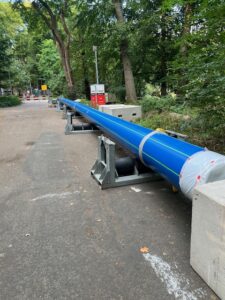 Deze buis – ongeveer 1200 meter lang – zal uiteindelijk als één buis bovengronds komen te liggen vanaf de scoutinggebouwen bovenaan de Hommelseweg tot aan de kruising Cattepoelseweg