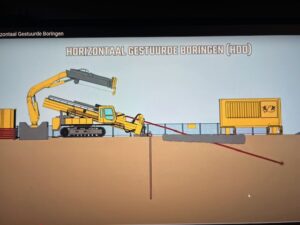 Daarna gaat de buis ondergronds worden getrokken zoals omschreven.